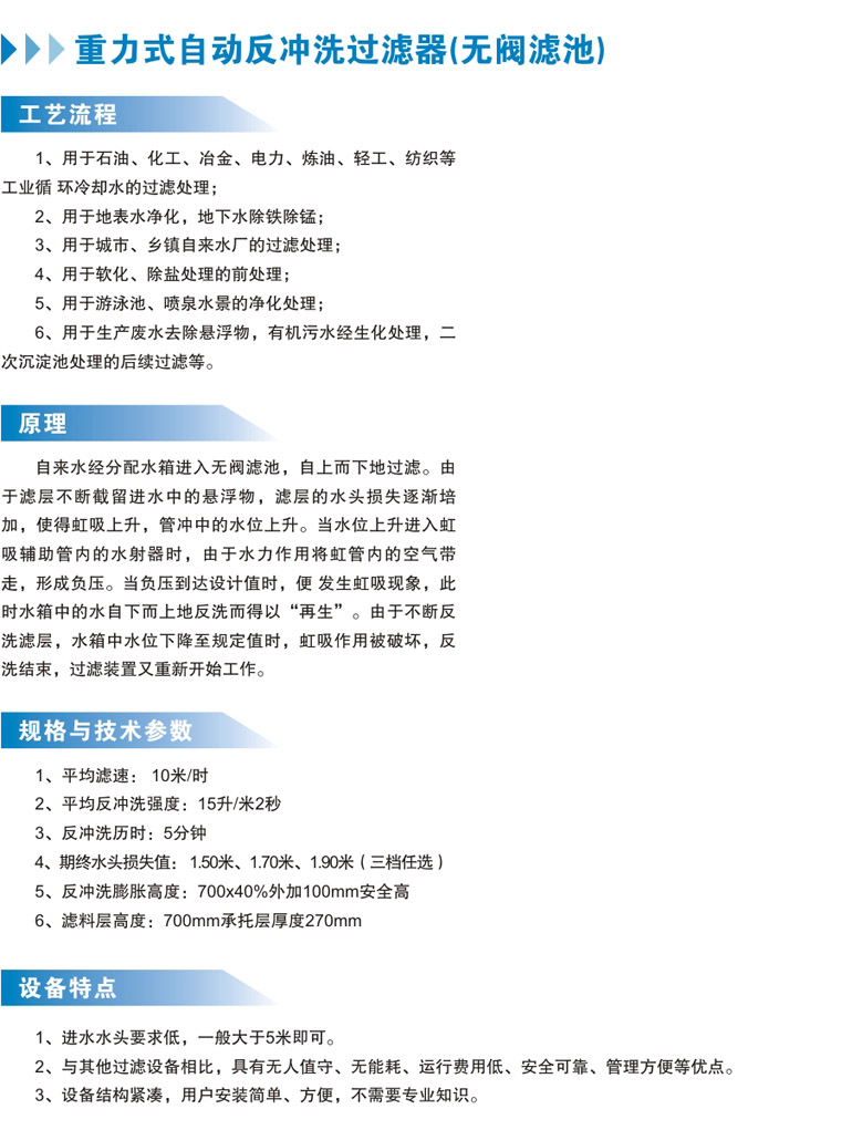 重力式自動反沖洗過濾器(無閥濾池)